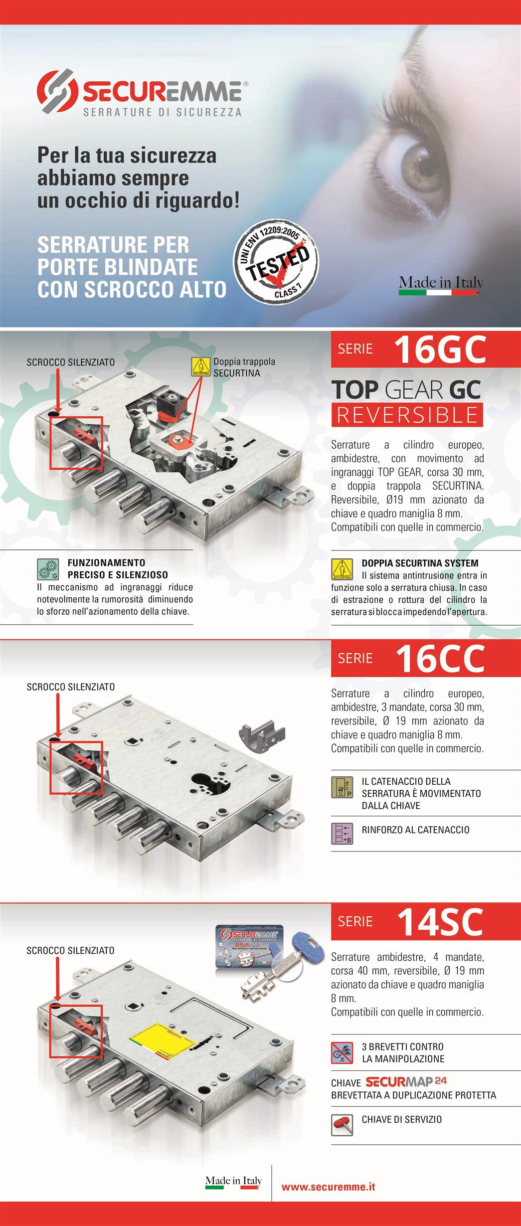Serrature per porte blindate con scrocco alto! Scrocco silenziato. Sporgenza pistoni 6 - 13 - 23 - 33 - 43 mm